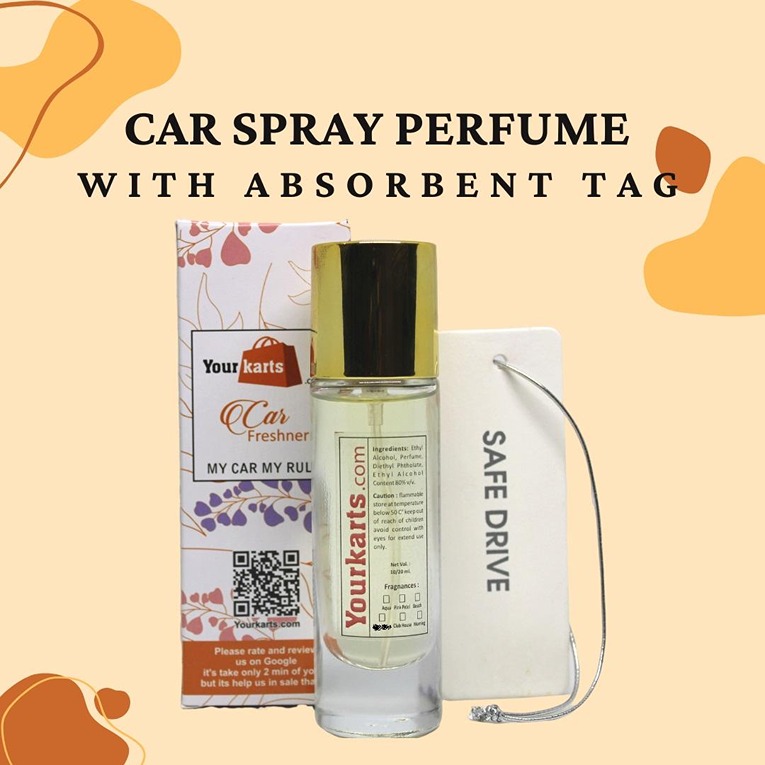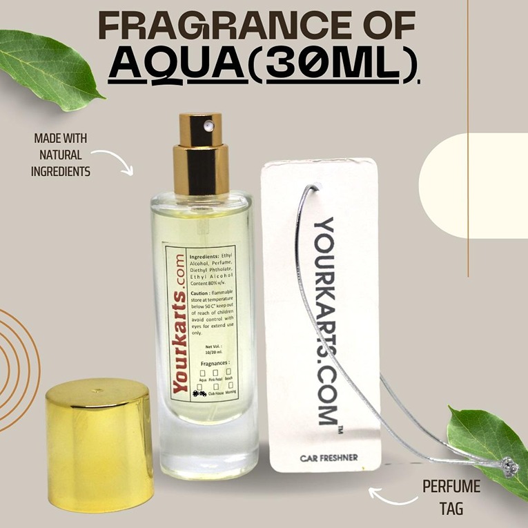 Car Perfume Spray Air Freshener with High Absorbent Hanging diffuser Tag | With Organic Ingredients and Natural Fragrance of Aqua (Pack of 2)