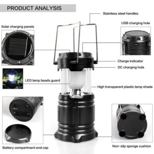 The solar Lartent LED light is collapsible, durable, well-made and portable, super bright, light weight. Providing you convenience when you need it most. Lantern flashlight are suitable for outdoors and indoors.