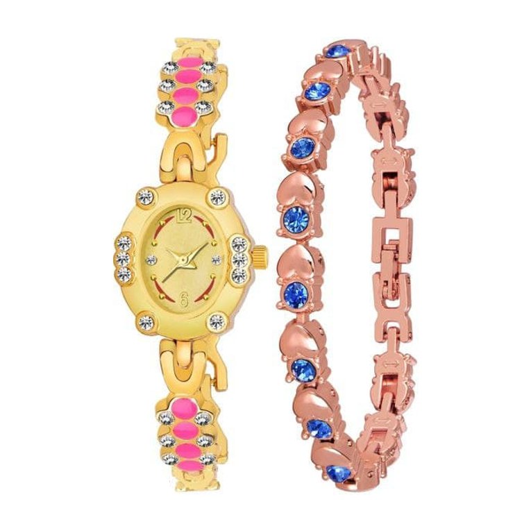 Elevate your style with this exquisite metal watch and bracelet combo designed for women.