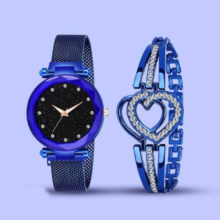 Elevate your style with this stunning combo of a women’s metal watch and bracelet.