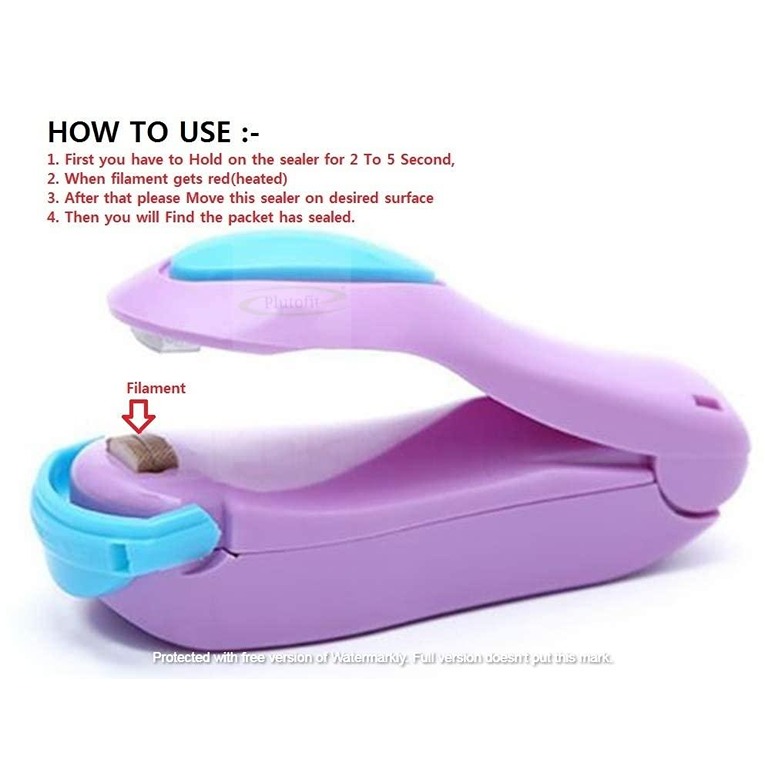 • First you have to Hold on the sealer for 2 To 5 Second after that please move this sealer for other places Then you will Find the packet has sealed.vor. Also safely pack cosmetics when traveling.