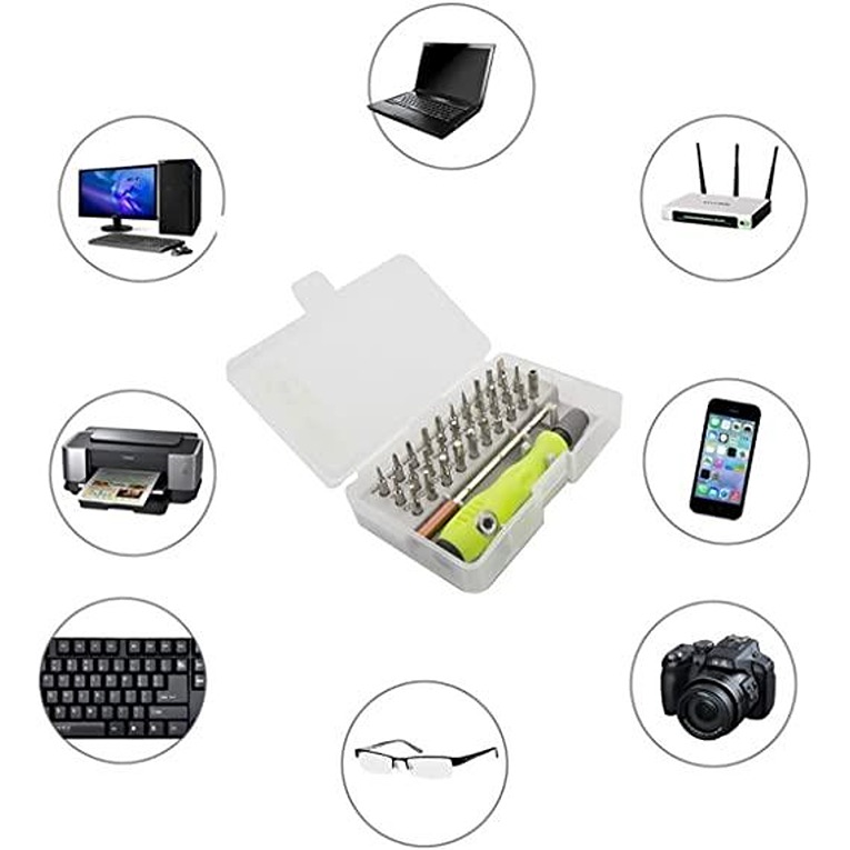 Screwdriver with matched 1 extension magnetic connector and 30 bit for repair many type of devices such as toys, games machine, camera, cell phone, laptop and others, very useful for home Professional repair tools to assist devices repairing (Mobile, PC, Tablets, Camera, Watch, Small Appliances)l.