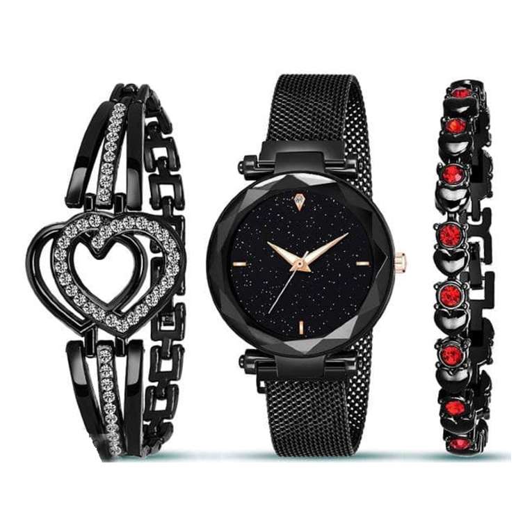 Elevate your style with this combo, featuring 1 watch and 2 bracelets made of premium materials.